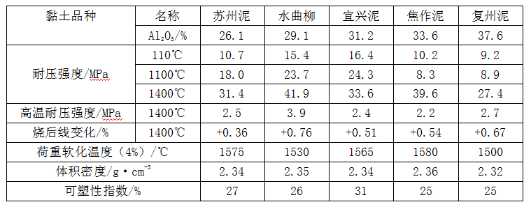 表1-1 黏土品種對可塑料性能的影響