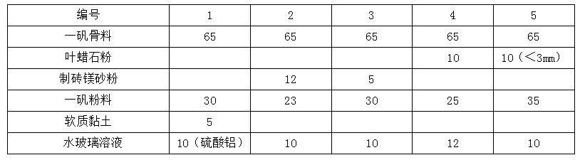 表1-1 盛鋼桶用搗打料的配合比(%)