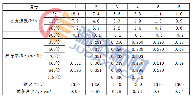 表1-2頁巖陶粒澆注料的性能