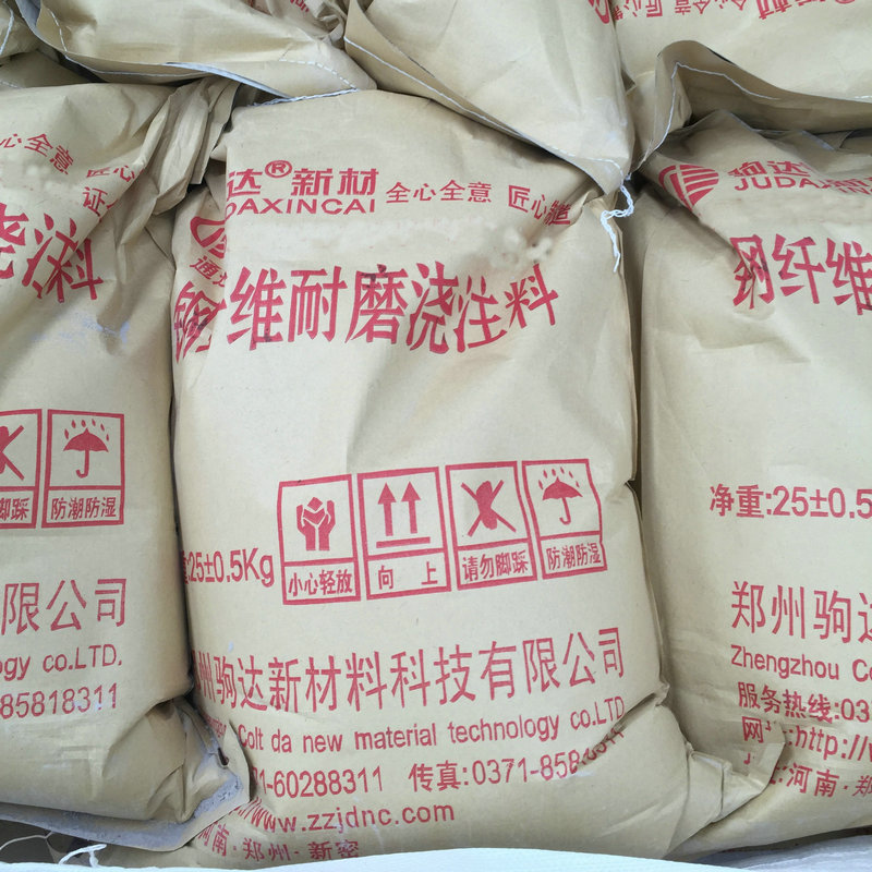 鋼纖維耐磨澆注料是采用特級鋁礬土熟料作骨料,以優(yōu)質(zhì)礬土熟料及剛玉細粉作基質(zhì),以超微粉等多種復(fù)合材料為結(jié)合劑和添加劑,外加不銹鋼耐熱纖維配制而成。該產(chǎn)品除具有常規(guī)的高溫耐磨損性能外,因在其配料中加入了一定數(shù)量的耐熱不銹鋼纖維,防止了材料中骨料與基質(zhì)在高溫狀態(tài)下產(chǎn)生的漲差,以及在啟停爐時產(chǎn)生的溫度梯度變化所產(chǎn)生的應(yīng)力而導(dǎo)致爐墻破壞,同時,由于鋼纖維的加入,使材料澆注后爐墻整體強度大大增強。在CFB鍋爐中,常用于爐膛出口及側(cè)墻、頂部、旋風(fēng)分離器直段、旋風(fēng)分離器頂、返料器等部位。
