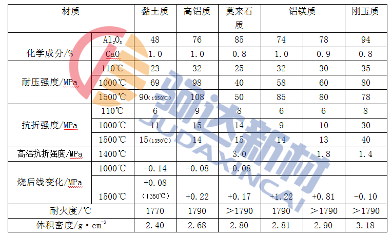 表1-1 普通超低水泥澆注料的主要性能