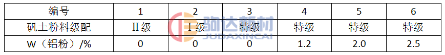 表1 試樣的粉料加入級別和鋁粉加入量