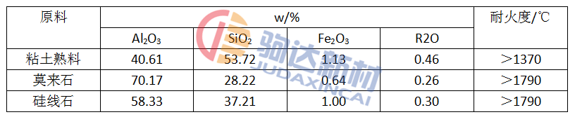 表1 主要原材料的化學(xué)組成和耐火度