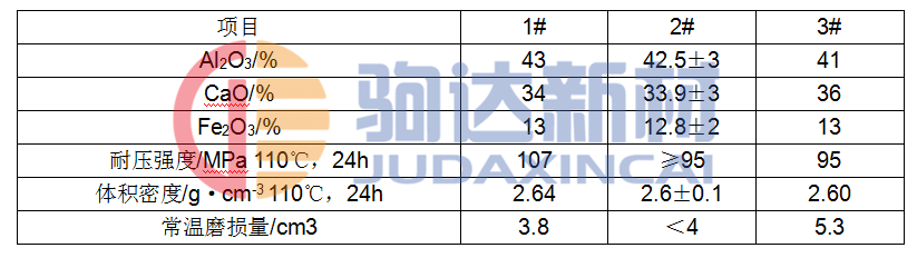 循環流化床發電鍋爐施工體極復雜,施工量大,系統管道內煤粉流速高,流量大,要求內襯用耐火材料強度高,耐磨性好,并且具有優良的施工性。本文根據使用條件,從原料制備、結合劑選擇及影響常溫磨損量的因素等方面進行研究,生產出高強超耐磨的Al2O3—CaO—Fe2O3澆注料。