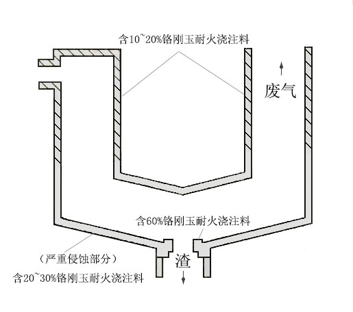 3、鉻剛玉耐火澆注料在熔融爐上的應(yīng)用