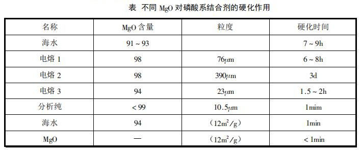 當(dāng)采用MgO細(xì)粉作促凝劑時(shí),在常溫下與磷酸可發(fā)生下列化學(xué)反應(yīng)而使磷酸耐火澆注料凝結(jié)硬化: