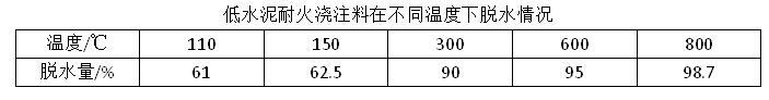 加熱爐在施工完畢后,澆注料砌體中含有大量的游離水和結(jié)晶水,需要進(jìn)行烘爐操作。游離水在150~200℃的溫度下可以大量排除,結(jié)晶水在300~400℃的溫度下可以大量排除。低水泥耐火澆注料在不同溫度下的脫水情況見下表。