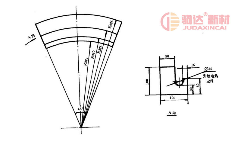 用重質耐火磚作為爐襯耐火層而原有的爐膛尺寸不變耐火磚的尺寸如圖根據原爐膛直徑而定圖中耐火磚適用于爐膛直徑φ1200的井式爐改造省去擱磚保溫層仍用原有的保溫材料砌筑填充電爐其它部位無任何改動。 需異型耐火磚可由耐火材料廠定做