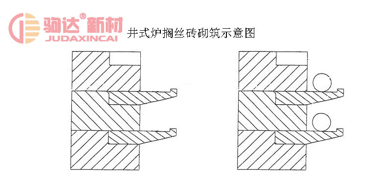 井式爐采用螺旋線狀電阻絲在加熱元件中占有相當比例,式電阻爐是完成熱處理工藝的常規設備。傳統的井式爐的爐襯耐火層由楔形磚或扇形磚和擱磚砌筑而成。由于處理鍛件時料筐起吊頻繁極易撞壞擱造成電阻絲脫落、短路、斷絲、漏電等故障既影響生產和安全也降低電爐使用壽命和增加維修費用。而通過改變耐火層爐磚的形狀和爐絲安裝方式可以有效地解決上述難題