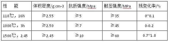 根據(jù)以上的檢測(cè)結(jié)果分析得出沾渣原因主要是因?yàn)槟突鸩牧现械腁L2O3、Fe2O3、SiO2與渣中的AL2O3、CaO、SiO2等成分發(fā)生反應(yīng)生成一些低熔點(diǎn)的特質(zhì)黏附在耐火材料的表面,通過調(diào)整耐火材料的組成和降低耐火材料的氣孔率可減少沾渣。另一方面可以從減少鐵水包的溫降著手。為此在實(shí)驗(yàn)室選用河南當(dāng)?shù)氐亩?jí)礬土熟料做骨料,加入部分Sic及2%左右的Cr2O3進(jìn)行反復(fù)試驗(yàn)。研制的耐火澆注料的化學(xué)組成(%):AL2O3≥65,SiO2≥25, SiC ≥9,Cr2O3≤2,CaO ≤1,物理性能見表3.